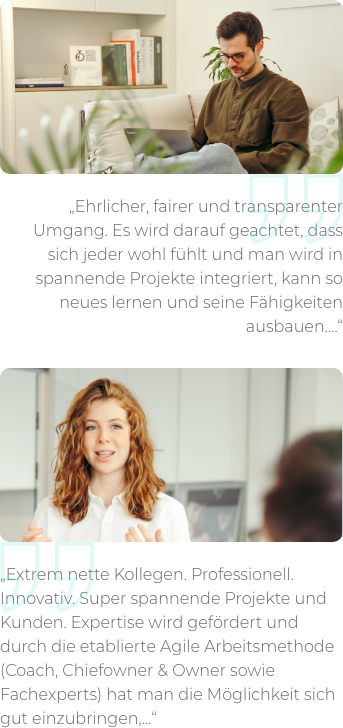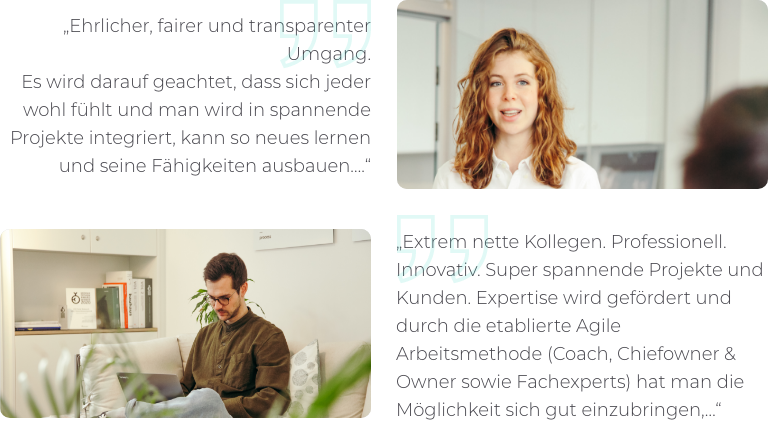 Wir sind stets auf der Suche nach neuen Expert:innen die Lust haben, spannende digitale Produkte und Services zu kreieren und dabei stets die Nutzer:innen und unsere Kund:innen im Auge behalten. Du findest bei uns ein zukunftsorientiertes, anspruchsvolles und abwechslungsreiches Aufgabengebiet, das du jeden Tag aktiv mitgestaltest. Dafür bekommst du bei uns viel Vertrauen und mehr als nur eine Rolle in unserem Team.